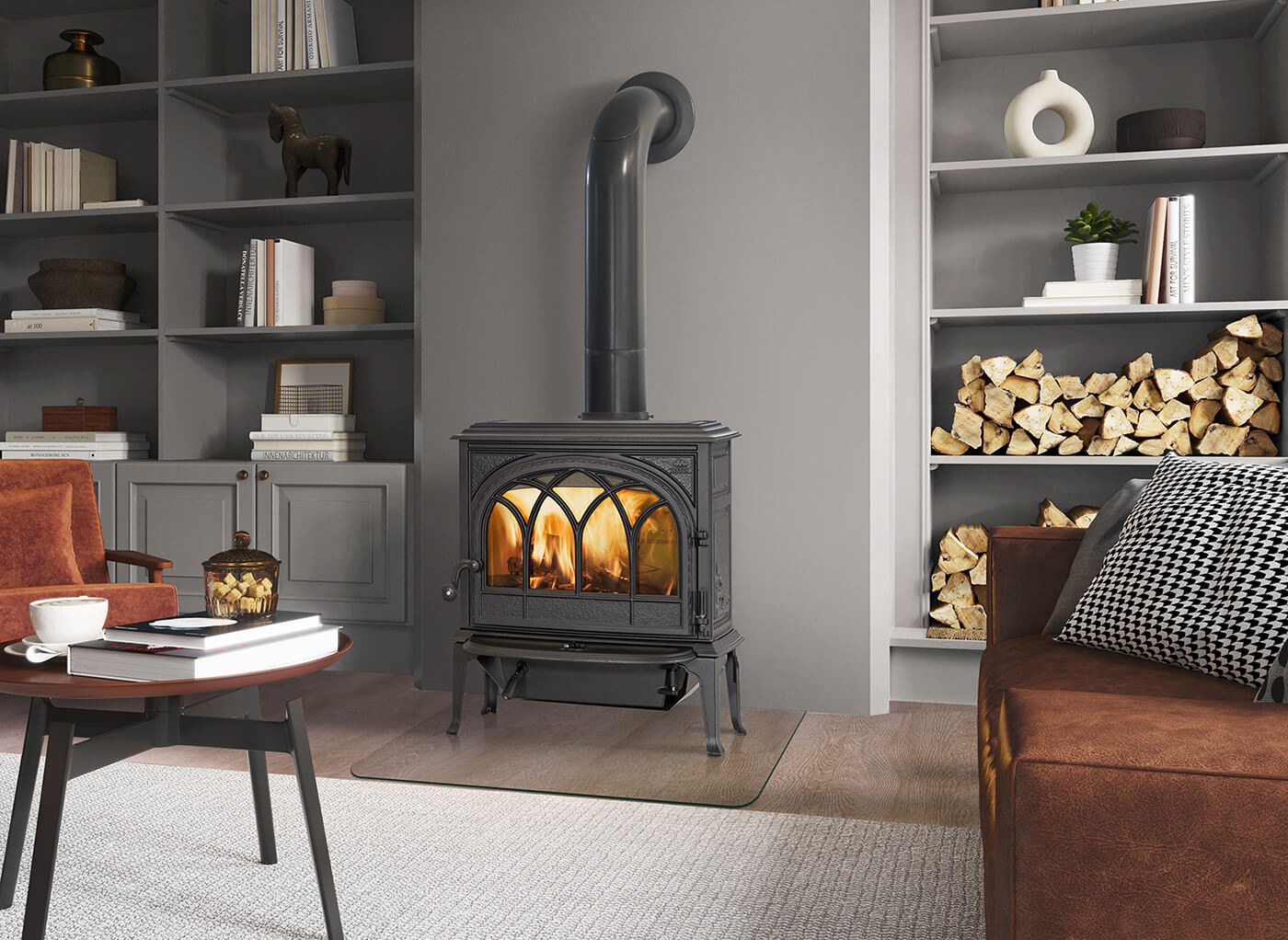 The Jøtul F 400 Eco Wood burning stove is a beautifully made cast iron wood-burning stove that combines timeless Scandinavian design with modern, efficient performance. It’s a fantastic choice for medium-sized rooms where you want the stove to be a real feature — offering a wide, clear view of the flames and a strong, controllable heat output.