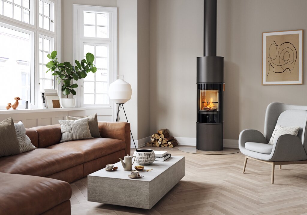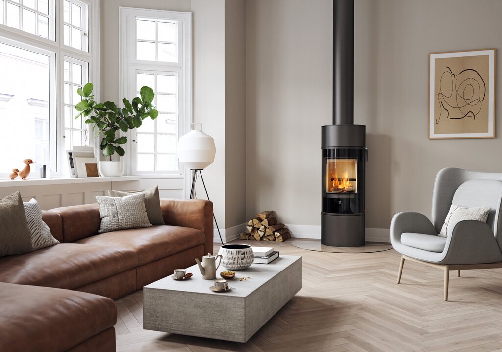 The Scan 84 range combines architectural Danish design with efficient everyday heating and a refined modern look. Its clean lines, elegant proportions, and large flame view help it stand out in the room while still feeling balanced and understated. You can choose between the Scan 84 Modern and the taller Scan 84 Modern Maxi, depending on the height and visual impact that best suit your space.